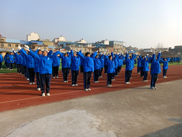 ~ 为扎实推进“阳光体育大课间”活动,积极贯彻“健康第一”指导思想,倡导“阳光·运动”健康理念,增强学生身体素质,培养学生团结协作精神和集体荣誉感,营造积极向上、健康文明的校园文化氛围。12月18日下午,定远中学教育集团炉桥中学在学校操场隆重举行2025年冬季广播操比赛,学校领导及全体师生共同参与了此次活动,活动由工会主席程光明主持。