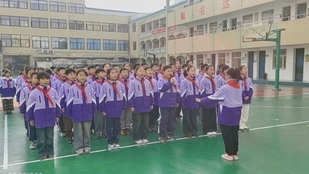 ~ 比赛中,各中队少先队员精神饱满、着装整齐,带着蓬勃朝气依次登场。低年级队员们以稚嫩却坚定的嗓音演唱《红红的太阳》,歌声轻快活泼、充满童趣,既唱出了对阳光与温暖的热爱,更传递出对祖国美好未来的憧憬。中高年级队员们演唱的《红星歌》节奏铿锵、气势昂扬,队员们眼神坚定、歌声嘹亮,用饱满的热情诠释着红色旋律中信仰的力量,将革命先辈的奋斗精神与新时代少年的责任担当融入每一句歌词,展现出新时代少先队员奋发向上、砥砺前行的精神风貌。