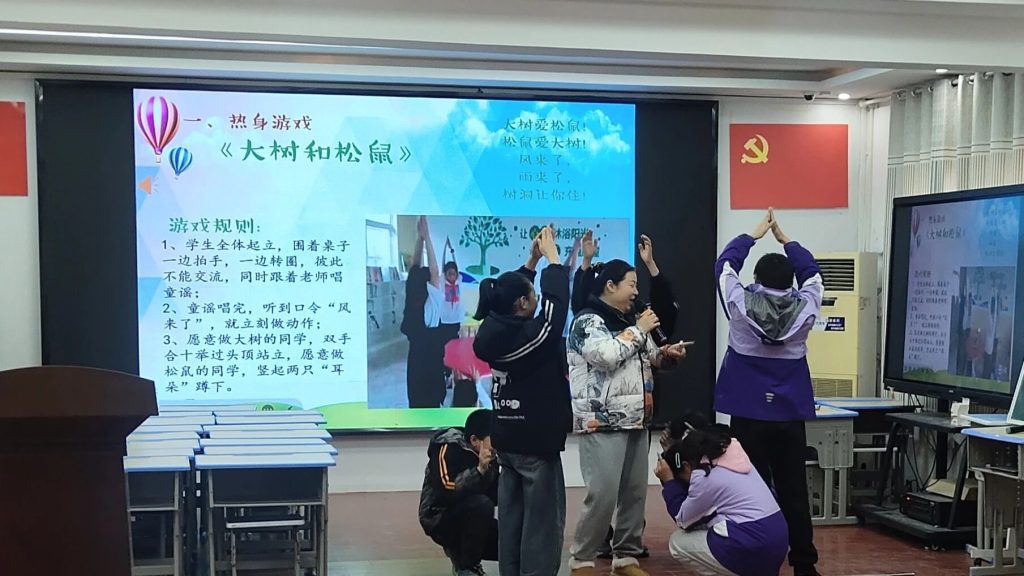 ~ 讲座开场,老师设计了暖身游戏“松鼠和树洞”:一名学生扮演“唠叨”的家长,重复说出“记得带水杯”“写完作业再玩”等日常叮嘱,另一名学生模仿回声回应。简单有趣的游戏瞬间点燃现场氛围,孩子们在笑声中真切体会到“唠叨”反复出现时的内心感受。