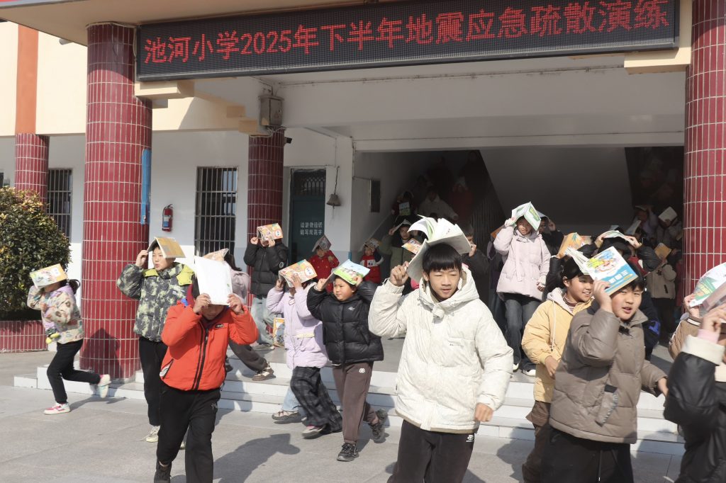 ~ 为进一步增强师生防震减灾意识,提升应急避险和自救互救能力,12月25日,定远县池河小学组织全校师生开展了一次地震应急疏散演练活动。