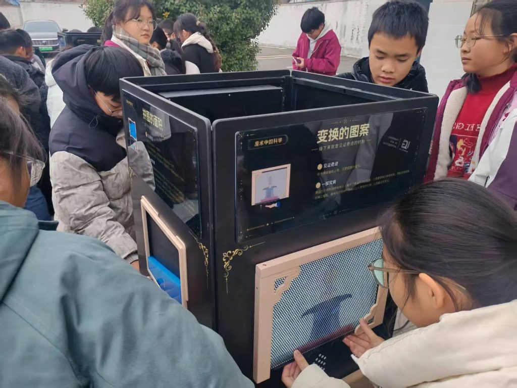 ~ 活动现场,智能机器狗的灵活表演引发阵阵惊叹;“魔术中的科学”揭秘了图案变换背后的物理原理;一系列趣味小实验让抽象知识变得触手可及。学生们在互动体验中感受科技魅力,在欢声笑语中探索科学奥秘。