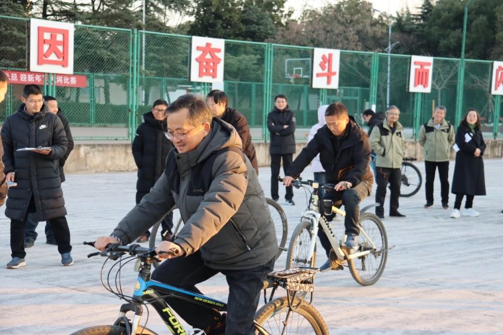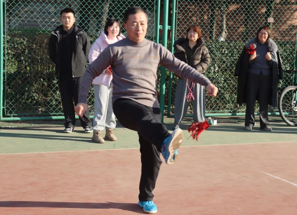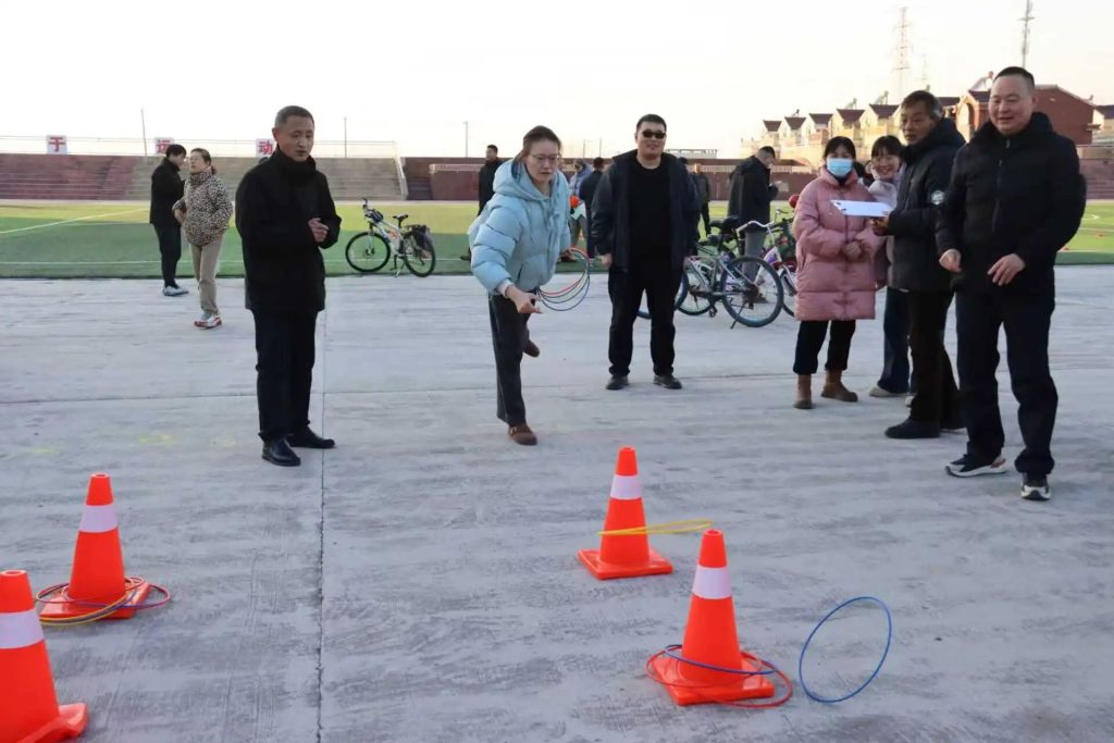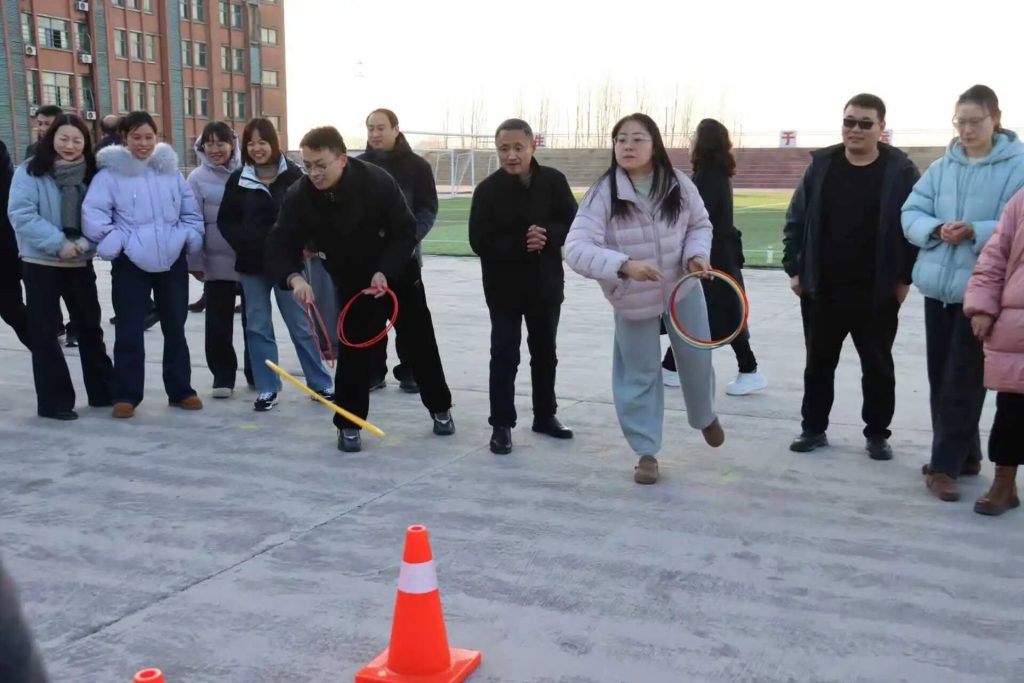 ~ 三尺讲台育桃李,运动场上展英姿。教职工趣味运动会共设置七个比赛项目,涵盖定点投篮、踢毽子、拔河、接力跳绳、套圈、趣味背夹球、自行车慢骑项目,赛场上,平日里儒雅严谨的老师们褪去粉笔尘嚣,化身活力满满的运动达人。在“趣味背夹球”项目中,老师们步调一致,“一二一”的口令化作最默契的暗号,向着终点奋力迈进;拔河赛场上,各参赛队伍紧握长绳、脚蹬实地,呐喊助威声此起彼伏,大家心往一处想、劲往一处使,将团队的凝聚力展现得淋漓尽致;定点投篮区域里,老师们或精准投射或巧妙调整,每一次篮球入网的清脆声响,都引来阵阵欢呼,尽显别样风采。