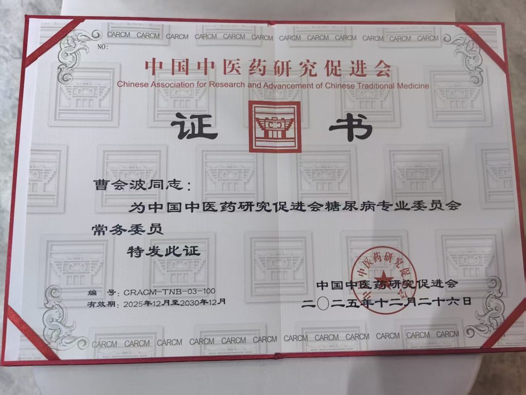 ~ 2025年12月26日,中国中医药研究促进会糖尿病专业委员会第三届换届大会在北京北投台湖演艺酒店举行。滁州市专家、滁州市中西结合医院内分泌科学科带头人曹会波教授当选为常务委员。