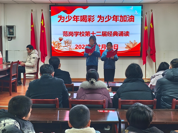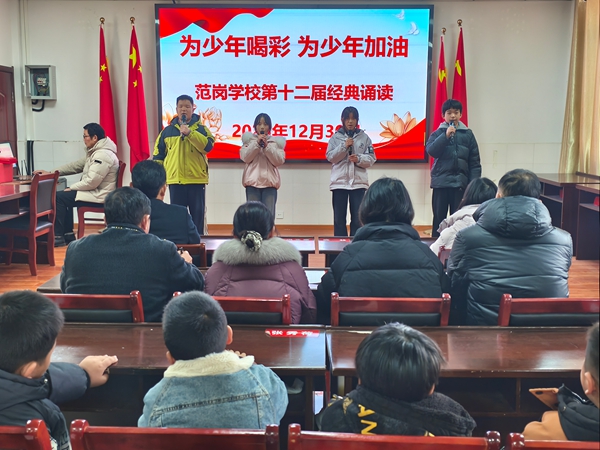 古韵悠悠传文脉,书声琅琅润童心。为传承中华优秀传统文化,厚植学生家国情怀,12月30日,定远县范岗学校举办了以“为少年喝彩,为少年加油”为主题的经典诵读活动,在经典的浸润中感受文字之美、文化之魂。