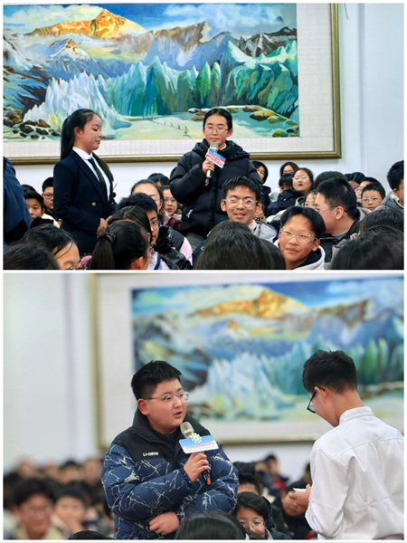 ~ 管欣蕊与田哲欢两位小主持人全程从容控场,流畅串联起比赛的每一个环节,赛后还手持话筒对现场同学展开即兴采访。被访同学拿着麦克风认真分享观赛感受,鲜活的互动让赛场氛围更添活力。