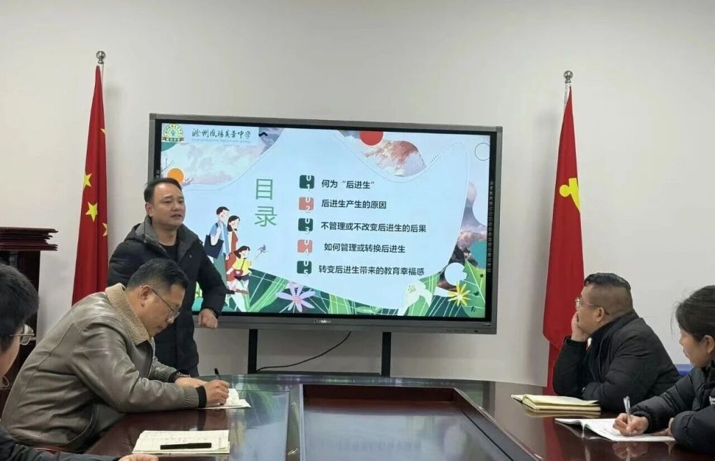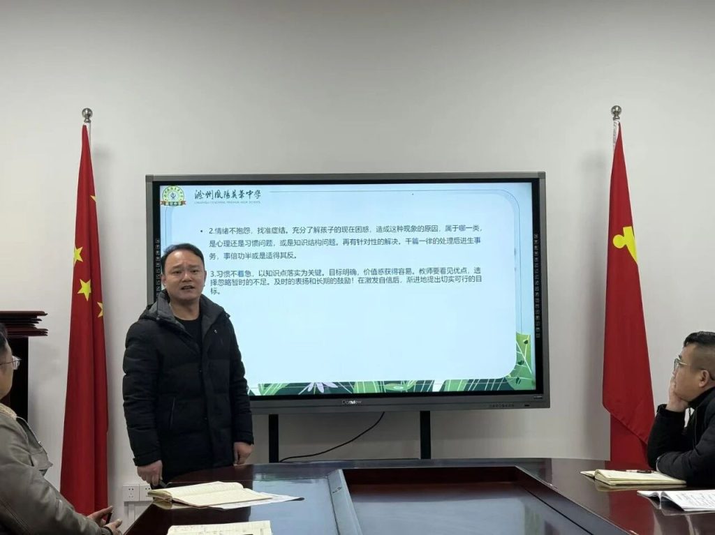 ~ 为进一步加强班主任队伍建设,推动班级管理经验共享与智慧共融,1月3日晚,滁州凤阳英华中学初中部开展以“培优辅弱”为主题的“心根教育论坛”活动。七、八、九三个年级分别进行了经验分享,凝聚育人共识,共话教育未来。初中部德育主任张培旭主持本次活动。