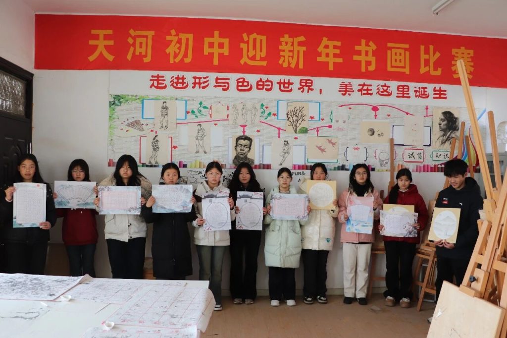 ~ 岁序更迭,新元肇启。当冬日暖阳浸润校园,为厚植传统文化根脉、陶冶学子艺术情操,尽显新时代少年的意气与风华,定远县天河初中迎新年书画作品评比完美收官。1月6日,天河初中团委在学校美术室为获奖者颁奖。