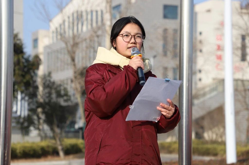 ~ 2026年1月12日上午,滁州凤阳英华中学全体师生在运动场上举行升旗仪式,担任本次升旗仪式的主持人是2501班的何俊颖同学。来自2504班蔡欣妍同学带来的主题演讲——《筑牢“心”防线,慧眼识骗局》。防诈骗应该从现在做起,从自身做起,牢记“不轻信、不透露、不转账”的原则,主动学习防诈骗知识,增强自我保护意识。要积极向身边的家人、朋友宣传防诈骗知识,共同营造安全、和谐的校园环境。
