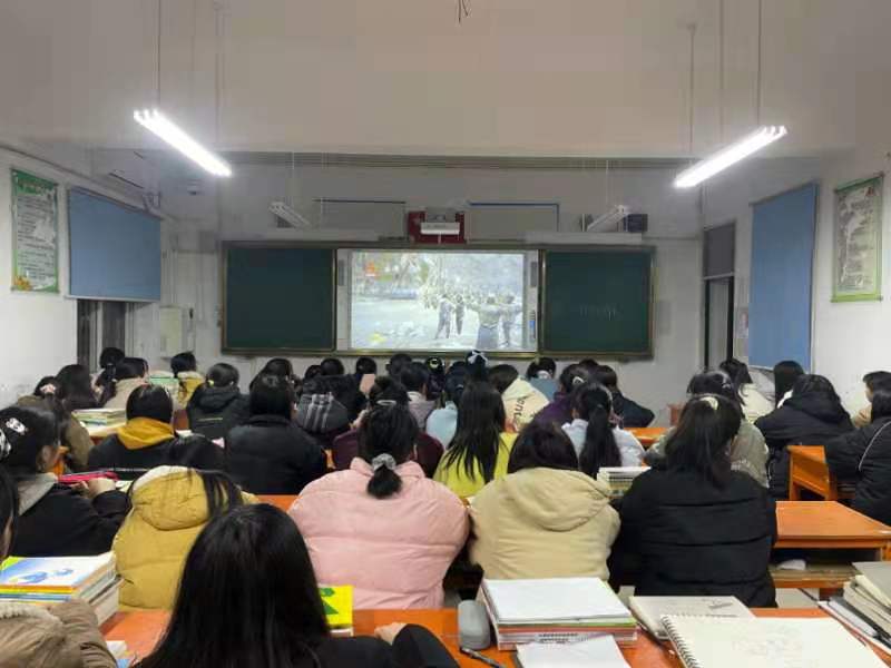 ~ 晚自习期间,各班班主任利用班级多媒体组织学生观看了加勒万河谷冲突现场的视频,深入学习5名边防官兵的英雄事迹。“身先士卒、身负重伤”的边防团团长祁发宝;“突入重围营救,奋力反击,英勇牺牲”的营长陈红军、战士陈祥榕;“突围后义无反顾返回营救战友,战斗至生命最后一刻”的战士肖思远;“在渡河前出支援途中,为救助战友牺牲”的战士王焯冉。5位英雄的感人事迹令同学们肃然起敬,潸然泪下。