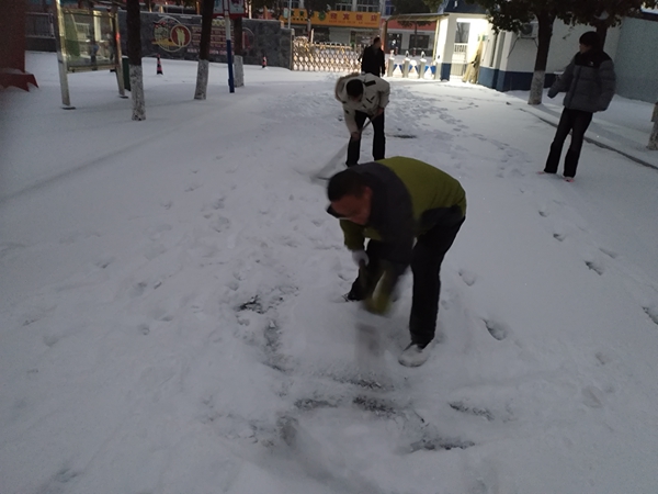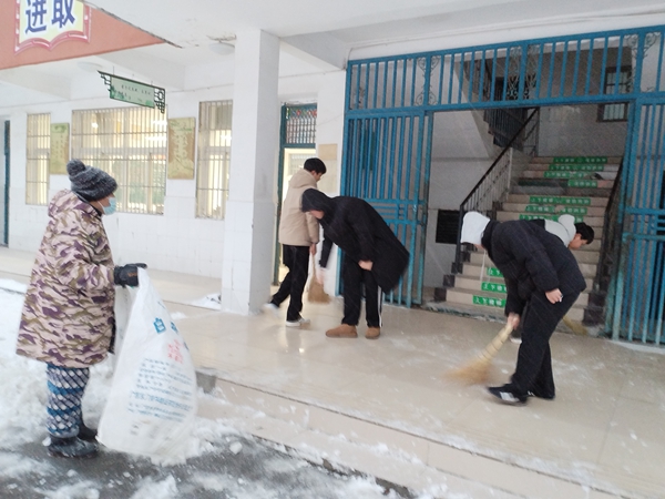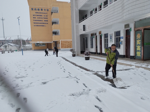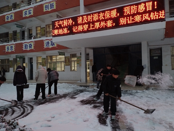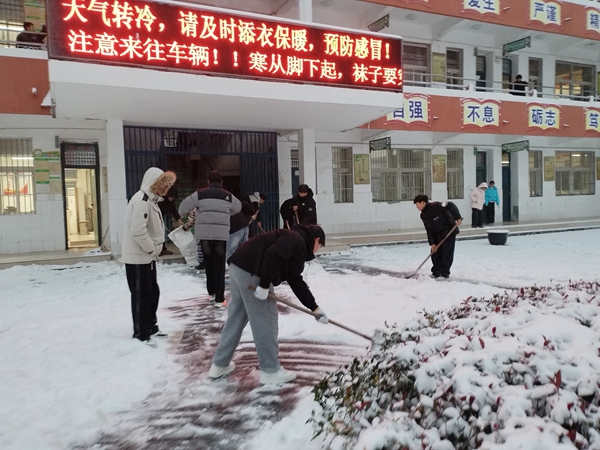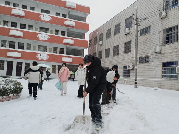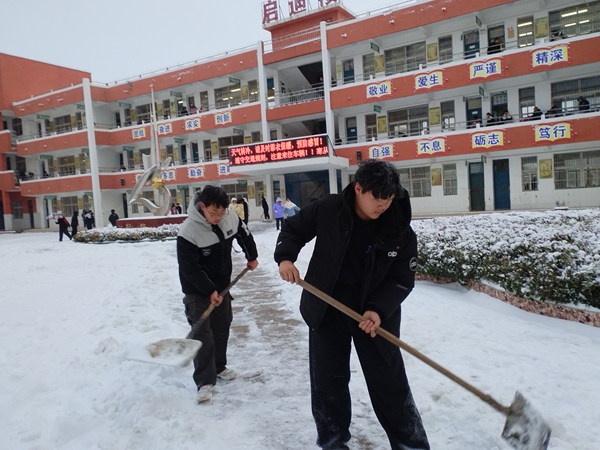 ~ 1月20日清晨,定远县池河中学在银装素裹中苏醒。昨夜一场大雪如期而至,将校园装点成童话世界,但也给师生的出行带来了隐患。以雪为令,闻讯而动。在校团委的迅速组织下,李发宝书记带领值班教师和早起的寄宿生们,拿起铁锹、扫帚,化身校园的“破冰者”。学校门前、主干道、教学楼、厕所周边……凡是师生们的必经之地,都是他们的“战场”。