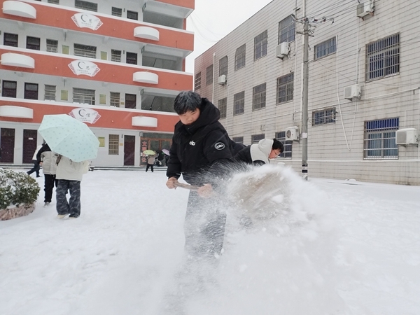 ~ 热火朝天,青春无畏。寒风凛冽,却吹不散大家的热情。铁锹与地面的摩擦声、扫帚的沙沙声、师生们互相鼓励的欢笑声,奏响了一曲独特的冬日劳动交响乐。汗水与雪花交融,笑容与晨光相应,他们用劳动开辟出条条“平安路”、“暖心道”。