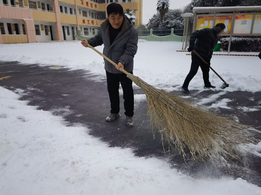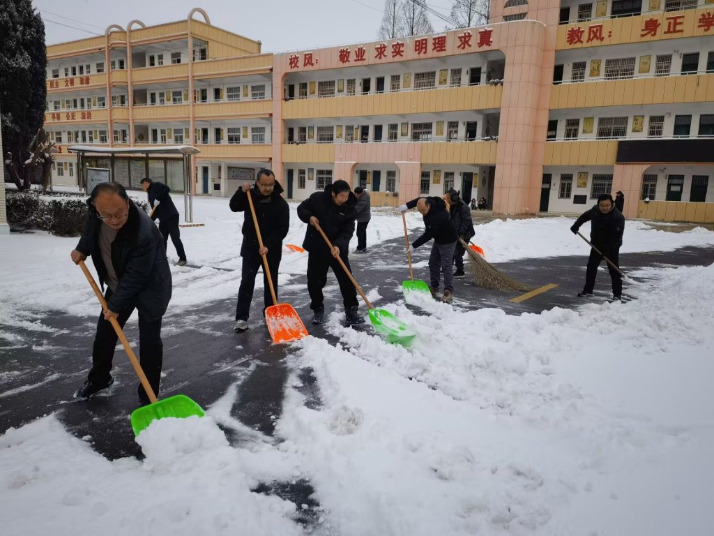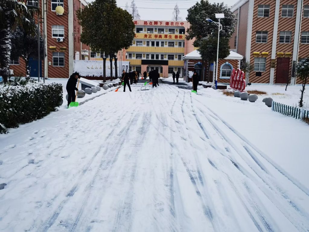 ~ 2026年1月19日晚上一场降雪,让定远县永康中学校园银装素裹,却也给师生出行带来安全隐患。为保障校园道路畅通,校党支部迅速组织党员教师开展义务扫雪行动。