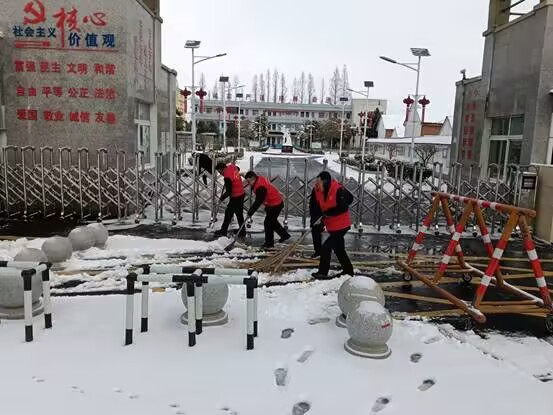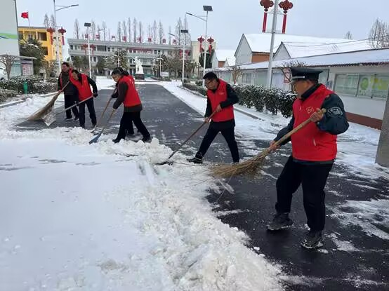 ~ 昨日夜间,定远县迎来今冬首场强降雪,皑皑白雪为校园披上银装的同时,也给师生出行带来诸多不便。为保障校园道路畅通与师生安全,1月20日清晨,定远县大桥初中党支部迅速发起“扫雪除冰暖校园”志愿服务号召。全校党员、领导班子成员在学校党支部书记、校长赵朝喜同志带领下,以实际行动践行初心使命,在风雪中筑起一道靓丽的“红色风景线”。
