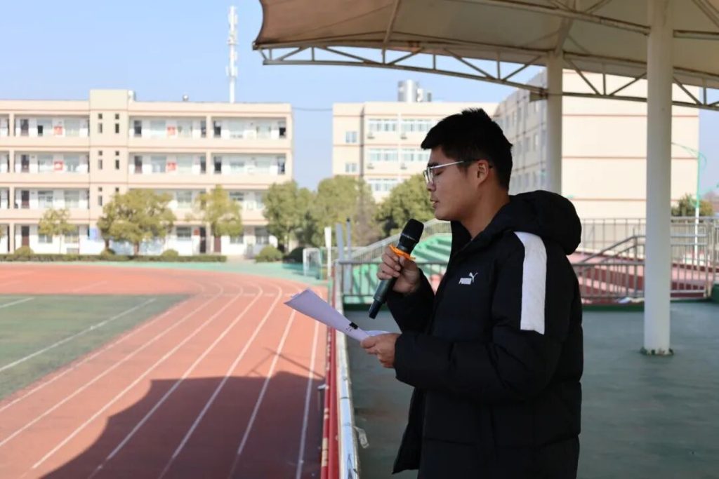 ~ 上午十时四十分,沐浴在冬日的暖阳下,田径场上各班级方阵身着统一校服,整齐列队,蓄势待发。比赛仪式由德育处主任安旭主持,艺体组大组长侯玉杰宣布比赛正式开始。