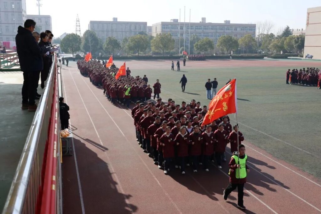 ~ 为全面贯彻阳光体育精神,锤炼学生意志品质,增强班级凝聚力,2026年元月15日上午,滁州市定远英华中学高中部在学校田径场隆重举行了“冬日阳光跑操”比赛,高一、高二年级全体学生共同参与了这场力与美的展示。