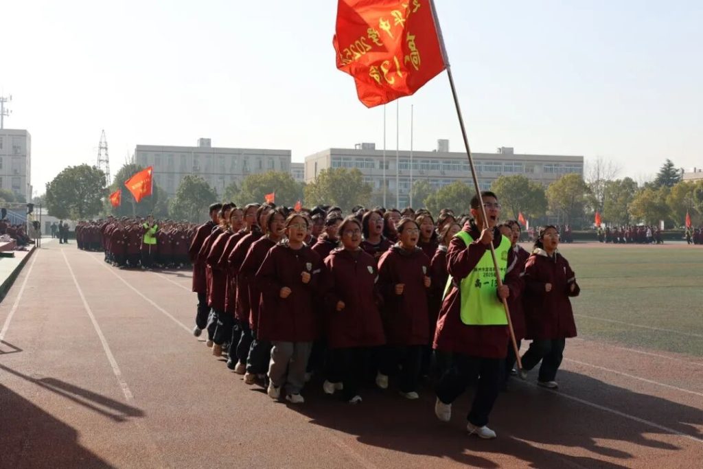 ~ 比赛过程中方阵铿锵,展现集体力量。同学们步伐整齐划一,口号震天动地,精神抖擞。从起步到行进,从直道到弯道,每一个方阵都如同一块移动的“钢铁磐石”,展现出了高度的组织纪律性和团队协作精神。