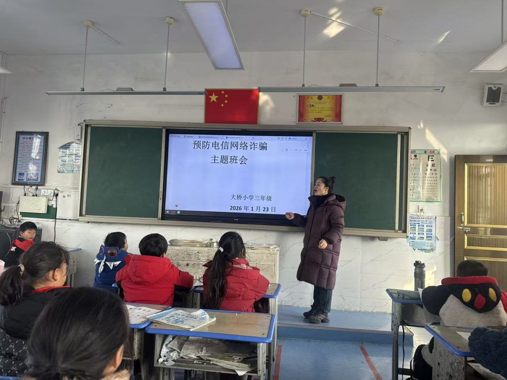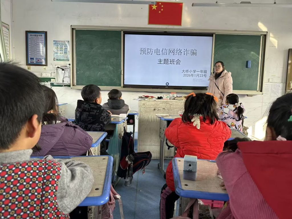 ~ 为进一步提升学生的安全防范意识,有效遏制电信网络诈骗向未成年人领域蔓延,2026年1月23日,定远县大桥小学组织各班级集中开展防范电信网络诈骗主题教育活动,通过观看反诈视频、召开主题班会等形式,为同学们送上一堂生动实用的“安全必修课”。
