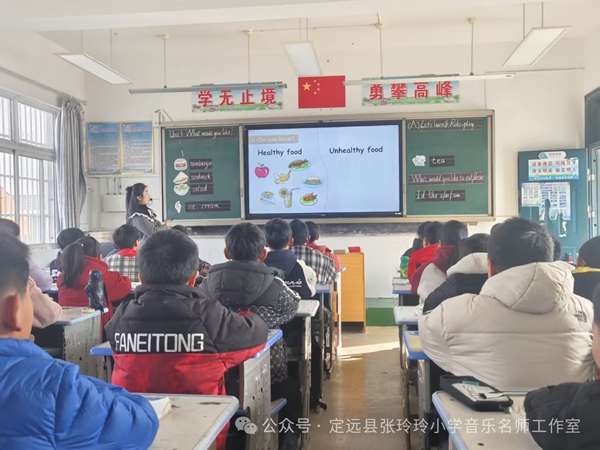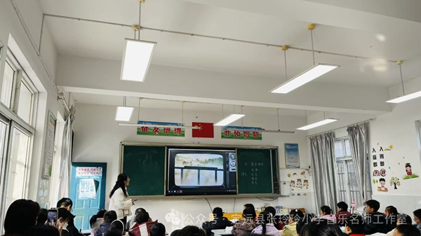 随后,英语与音乐示范课同步开展,张桥二小肖梦雪老师结合学科特点和教学实际,带来一堂精彩的英语示范课。