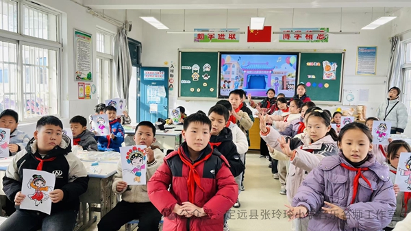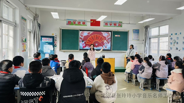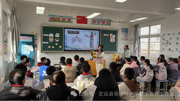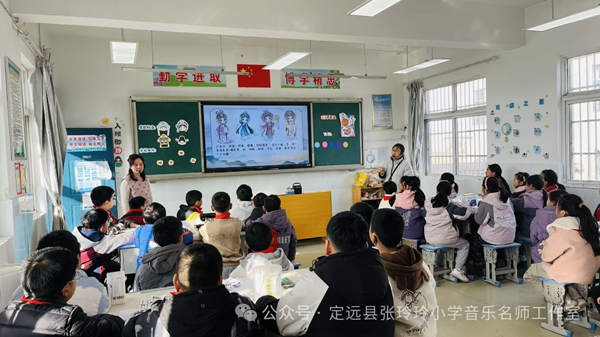 《信息技术环境下戏曲进课堂培养小学生传统文化素养的实践研究》课题组主持人、建设小学音乐老师张玲玲与课题成员美术老师黄海燕,以京歌《龙里格龙》双师融合创新课堂为载体,沉浸式教学为张桥二小四年级的学生带来戏曲的美育实践与文化传承。