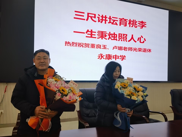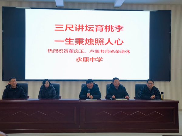 1月28日上午,定远县永康中学在多功能大厅举行一场温馨而庄重的光荣退休欢送仪式,热烈祝贺董良玉、卢娜两位老师圆满结束教学生涯,荣休享颐。全校教职工齐聚一堂,向两位深耕教育沃土数十载的老教师,致以崇高的敬意与真挚的祝福。