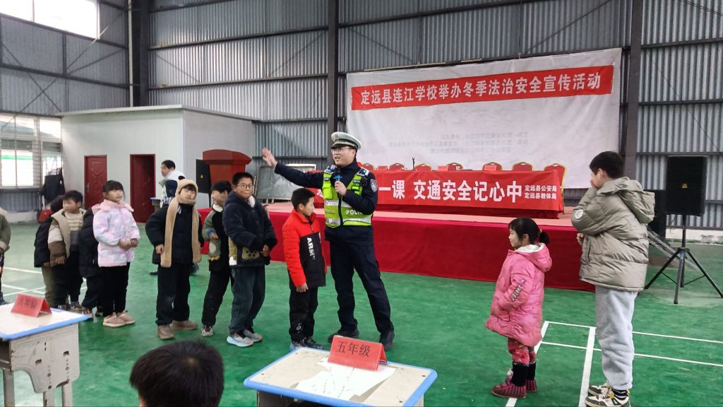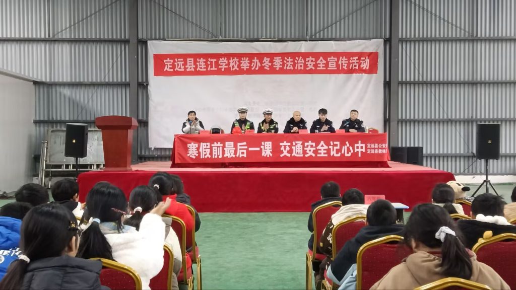 ~ 为增强广大师生安全防范意识,提升应对突发事件的自救互救能力和法律法规知识,营造安全、和谐、稳定的校园环境,1月28日,定远县连江学校联合县交警队、连江镇司法所、连江镇派出所等部门开展冬季法治安全宣传教育活动,将安全的种子深深播撒进孩子们的心田。