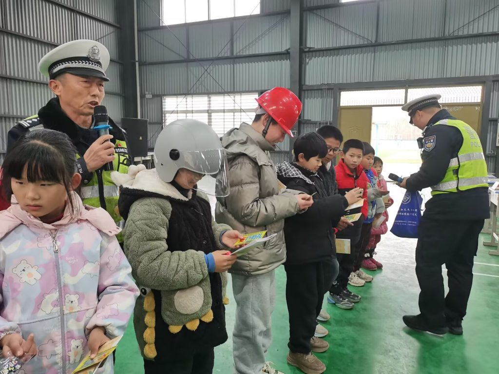 ~ 县交警队宣讲员,用游戏互动、模拟场景等方式,深入浅出地向大家讲解步行、骑行、乘车、驾驶等方面的安全规则;强调“一盔一带”的重要性,教育学生遵守交规、知险避险,争做文明交通的实践者和宣传者,同时通过发放宣传单、播放警示片、展示交通标志等,强化学生交通安全意识。