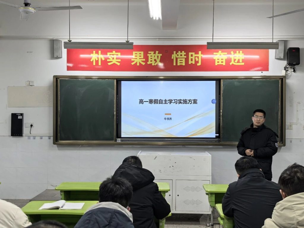 ~ 高一年级牛书齐主任从“整体规划、实施框架”,“关键执行要素、保障措施”两个方面进行分享,重点强调要明确寒假自主学习的核心目标,需要强化自律能力、延续学校学习节奏、促进知识巩固与拓展,同时注意春节前后两个时间段的自主学习时间的划分。