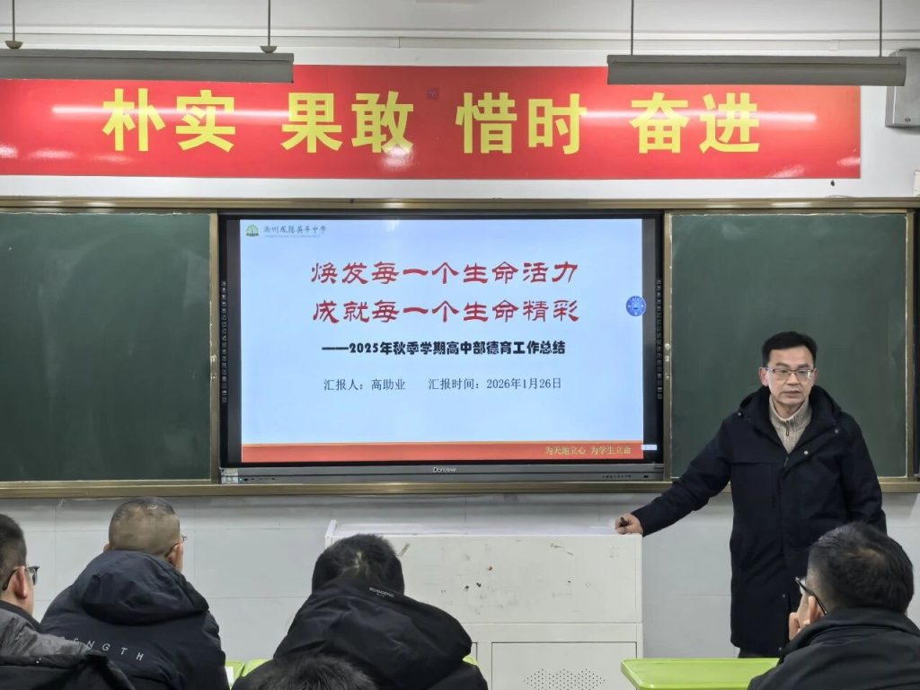 ~ 高校长以《焕发每一个生命活力,成就每一个生命精彩》为主题,简要回顾了本学期以来德育工作的亮点,对本学期德育工作存在的不足及针对性改进措施进行了系统全面的总结。