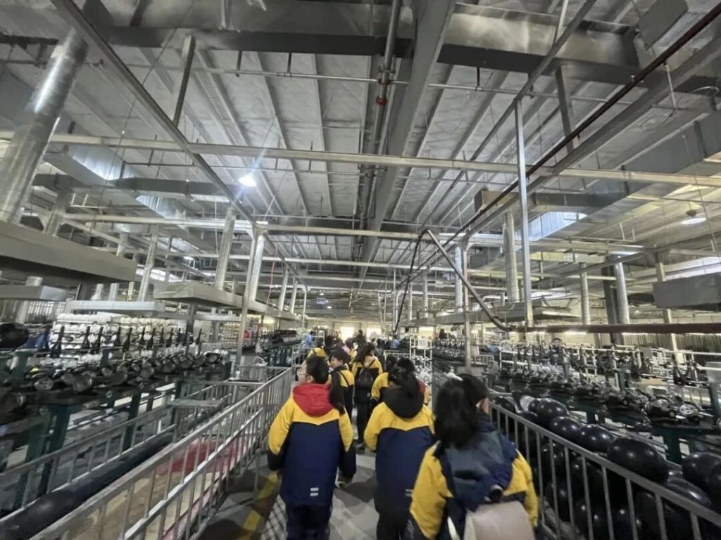研学之旅首站,同学们来到定远县鑫宇体育股份有限公司,走进生产车间与产品展示区,近距离观摩体育用品的研发与制作流程。在讲解员的细致讲解下,大家了解到本土体育产业的发展脉络与创新成果,真切感受到家乡企业的实干与奋进,激发了同学们对本土产业的自豪感。