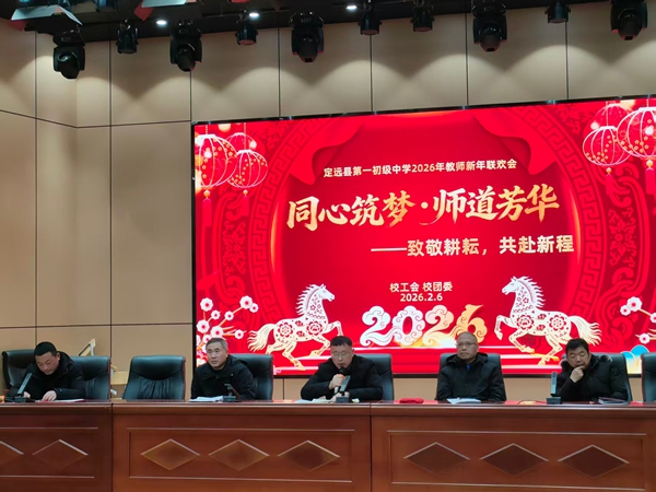 ~ 2月6日,定远县第一初级中学双塘中学校区报告厅内欢声笑语,喜气盈门。该校全体教职工欢聚一堂,共同庆祝甲午马年的到来,一场主题鲜明、精彩纷呈的2026年教师新年联欢会在此热烈举行。