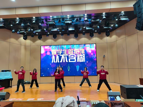 ~ 联欢会伊始,学校传达了上级部门关于寒假工作的相关文件精神,并向辛勤工作一年的全体教职工致以诚挚的新春问候与美好祝福。随后,副校长严广军就节假日期间的安全与纪律作了重点提醒,倡导大家防范诈骗、远离赌博、杜绝酒驾,共度一个文明、祥和、安全的春节。校党支部书记、校长黄海山作总结讲话,他对本学期各项工作进行了简要回顾与剖析,在充分肯定全体教职工努力与成绩的同时,特别点赞了学校在体育领域取得的亮眼成果。