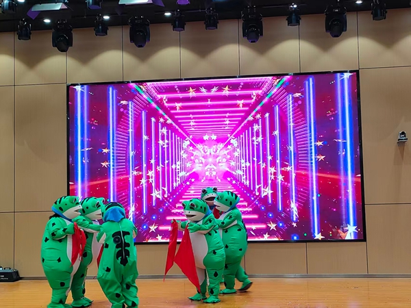 ~ 南环路校区九年级组刘言洁、廖芝梅等老师表演的配音秀《教师的心声》,结合职业特点,妙趣横生,道出了教师们的心声。艺术组何素娟老师与团委副书记刘晓燕联袂献上的黄梅小调《平地一声春雷响+女驸马》,韵味悠长,展现传统戏曲魅力。南环路校区七年级组王丽、潘书花等老师表演的健身操《大家一起来》,节奏明快,带动了全场互动。