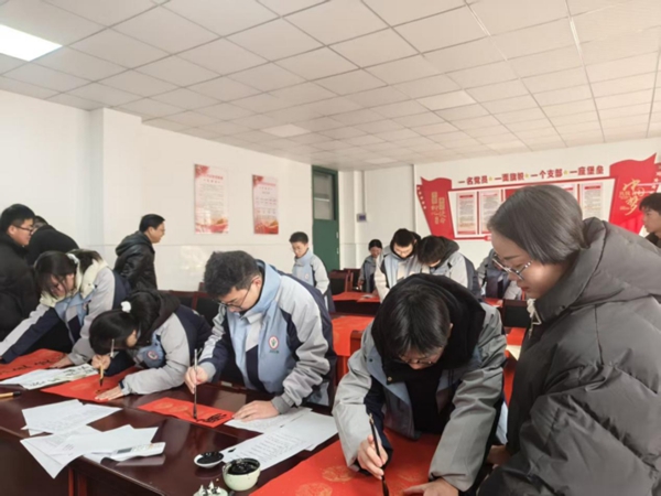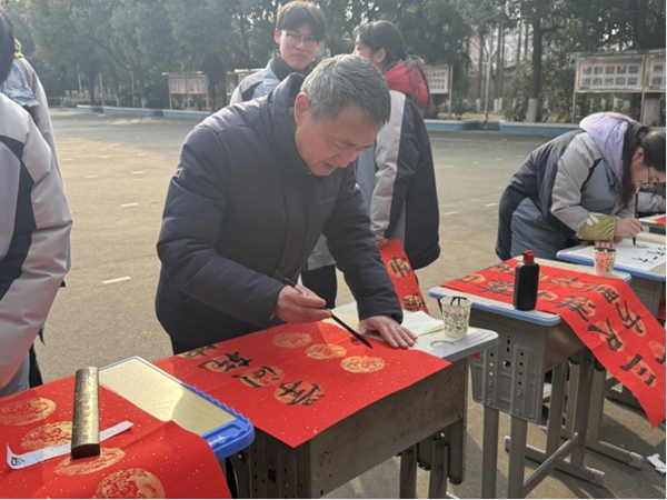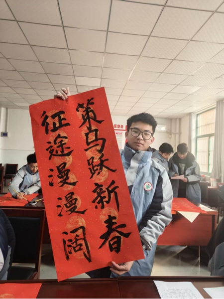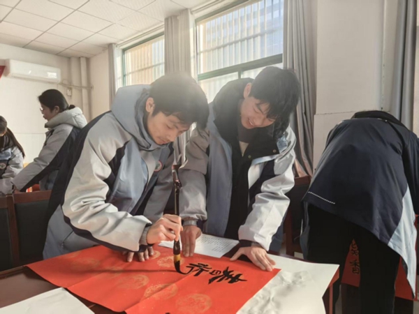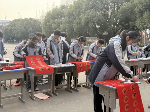 ~ 新春将至,年味渐浓。2月7日-8日,定远三中组织高一、高二年级师生开展“写春联、迎新春、送祝福”主题实践活动。师生携手、笔墨传情,在一撇一捺中感受传统年俗,在一纸一墨间共书新年期盼。