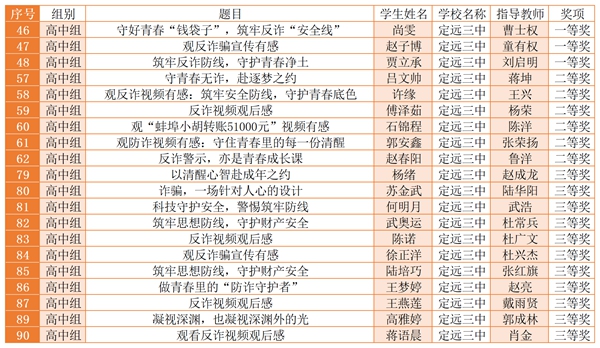 2026年定远县“全民反诈 守护成长”校园反电诈主题征文活动评选获奖名单