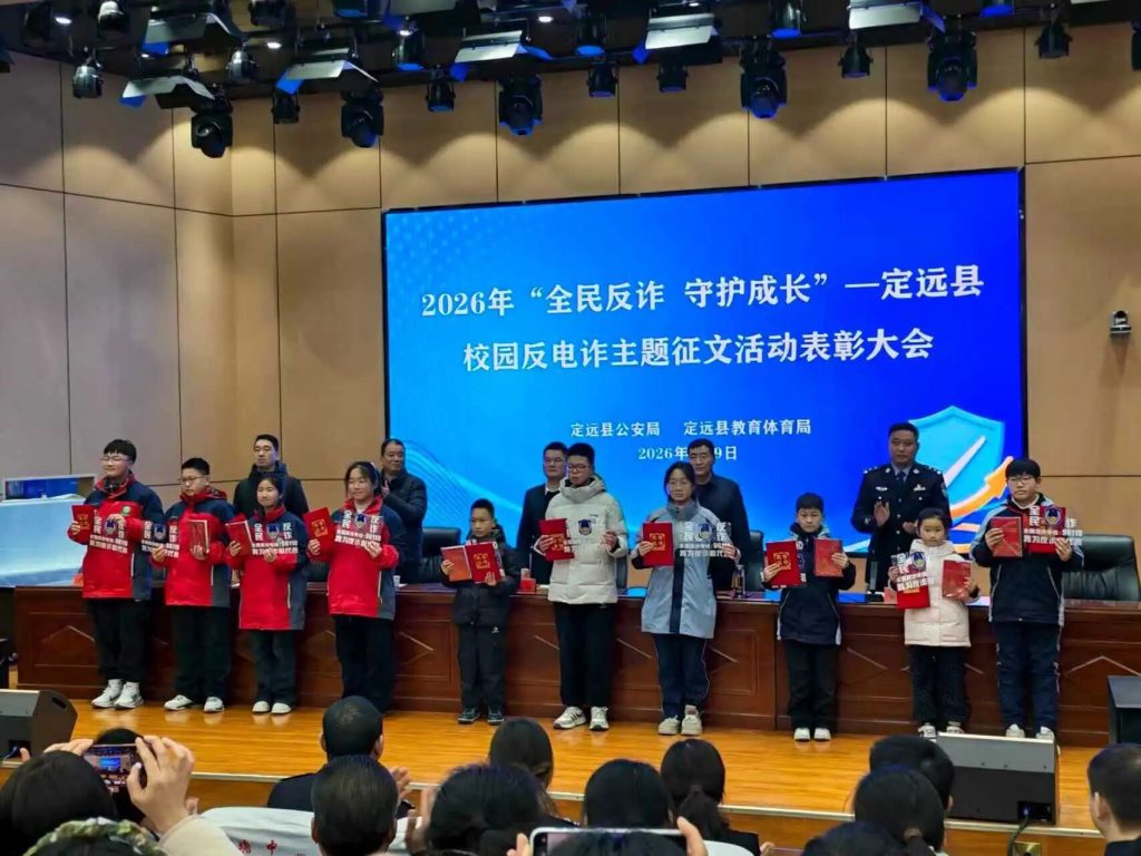 ~ 近日,定远县公安局、定远县教育体育局联合发布2026年“全民反诈 守护成长”主题征文活动评选结果通报,定远县第三初级中学学子在此次全县性征文赛事中表现亮眼,斩获多个奖项,展现了该校扎实的反诈教育成果和学生优秀的文字表达能力。
