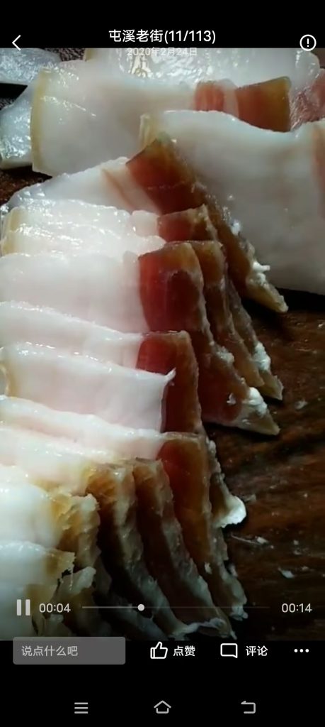 定远桥尾选用当地的定远猪臀部带尾骨的一块肥瘦间半的肉盘,精心加工制做而成的肉制品。每个”桥尾”重量大约在2-2.5公斤左右,形状如扇,其肉切片,晶莹透亮,红白相间。