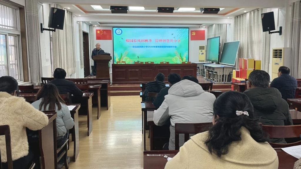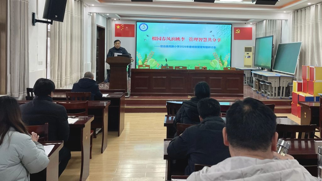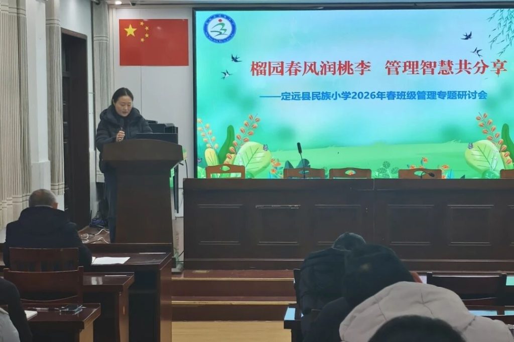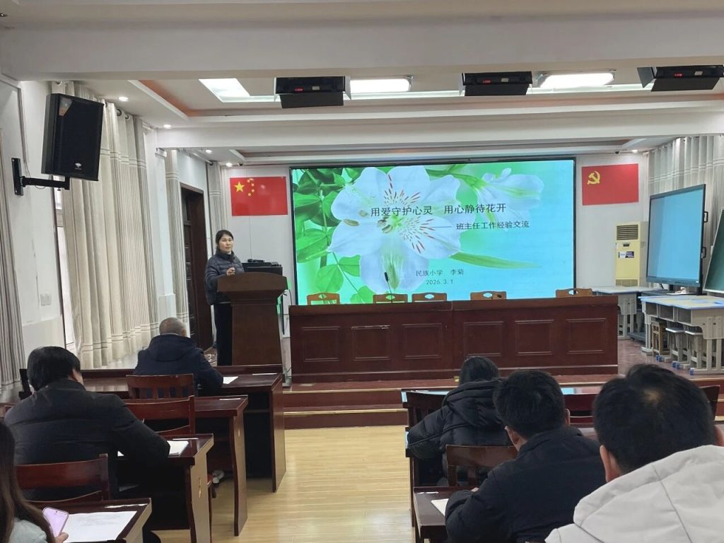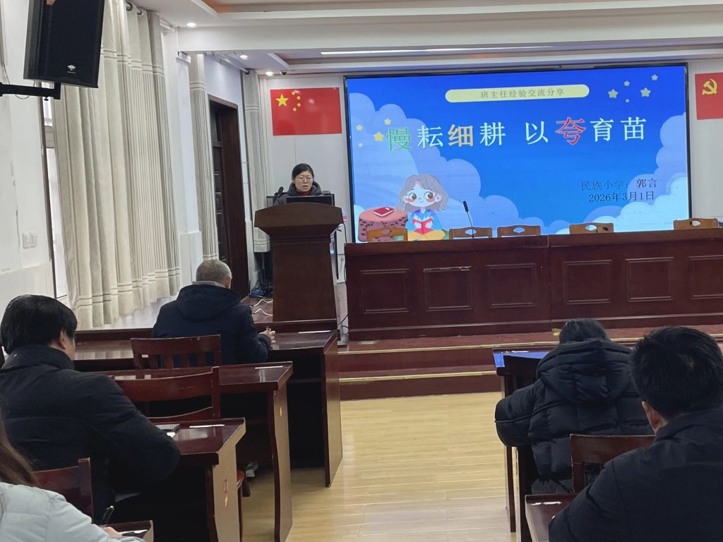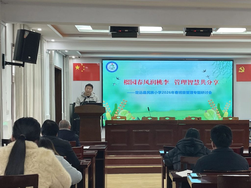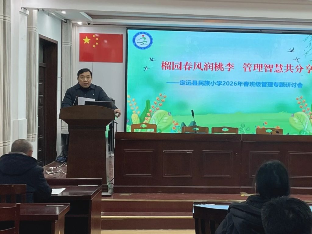~ 为提升班主任队伍建设水平,优化班级管理,交流育人经验,助力新学期德育工作高质量起步,3月1日下午,定远县民族小学召开了2026年春季班级管理专题研讨会。全体班主任、德育处工作人员及校级领导齐聚一堂,共话班级管理新路径。本次会议由德育处组织,王俊飞主任主持。