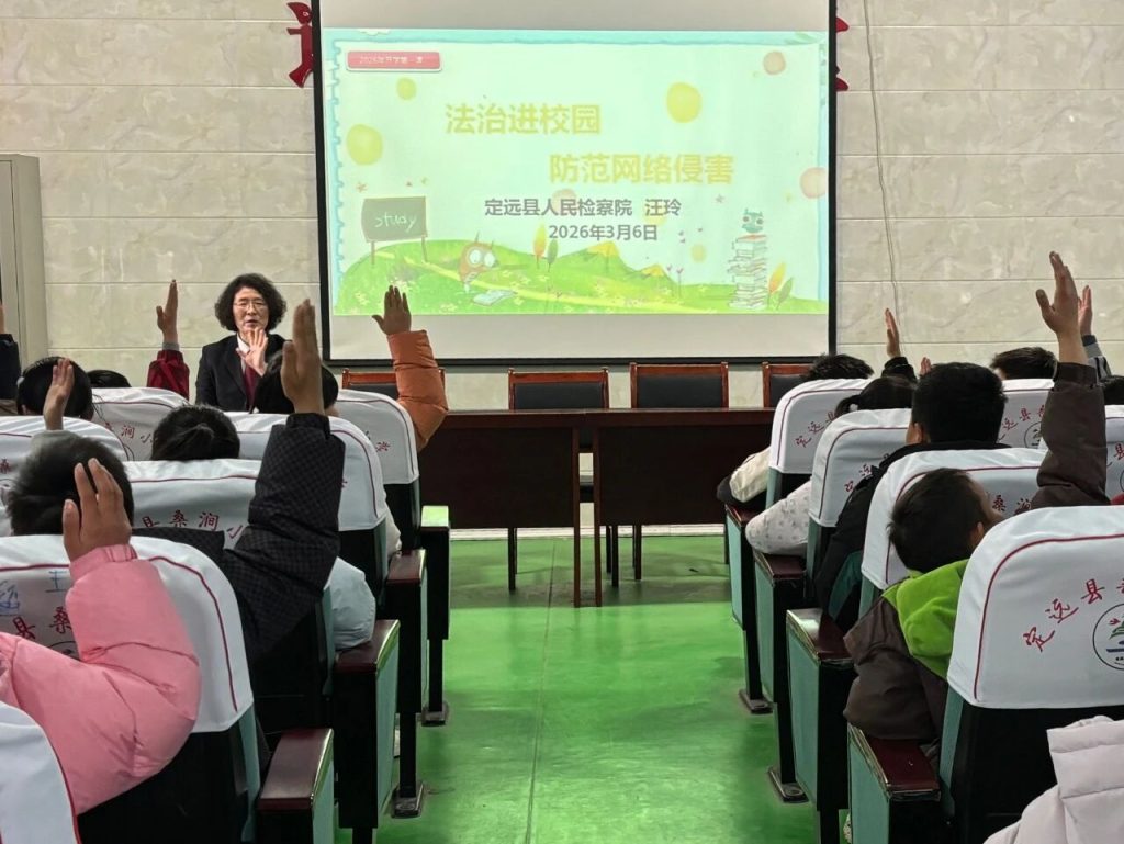~ 为进一步增强未成年人网络安全意识和法治观念,有效防范网络侵害,3月6日,定远县桑涧小学特邀定远县人民检察院检察官汪玲走进校园,开展了一场生动的“法治进校园 防范网络侵害”主题宣讲活动。