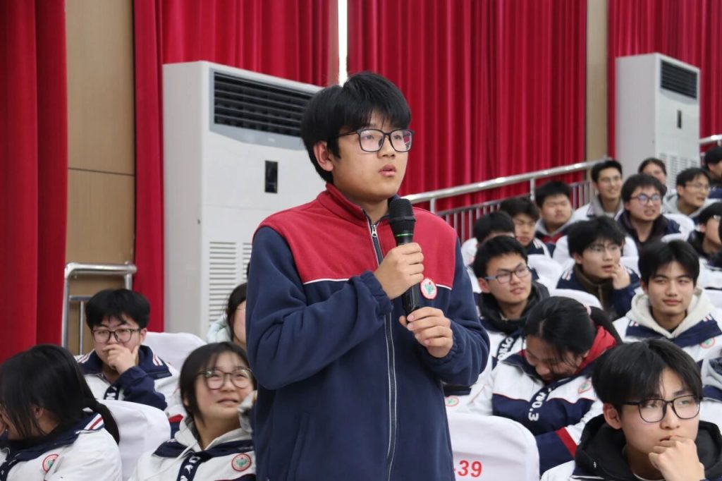 ~ 活动伊始,高三年级主任张荣扬代表全体师生对严松荣归母校表示热烈欢迎,他指出,优秀校友是学校人才培养成果的生动体现,更是激励在校学子奋发向上的宝贵精神财富。此次校友返校讲学,既是校友对母校培育之恩的深情回馈,更是校友情系桑梓、助力母校高质量发展的具体行动。