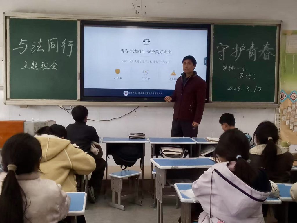 ~ 为进一步增强学生法治观念,筑牢未成年人违法犯罪思想防线,营造安全和谐的校园成长环境,2026 年 3 月 11 日,定远县炉桥一小教育集团组织各班级举行预防未成年人违法犯罪主题班会,让法治种子在学生心中生根发芽。