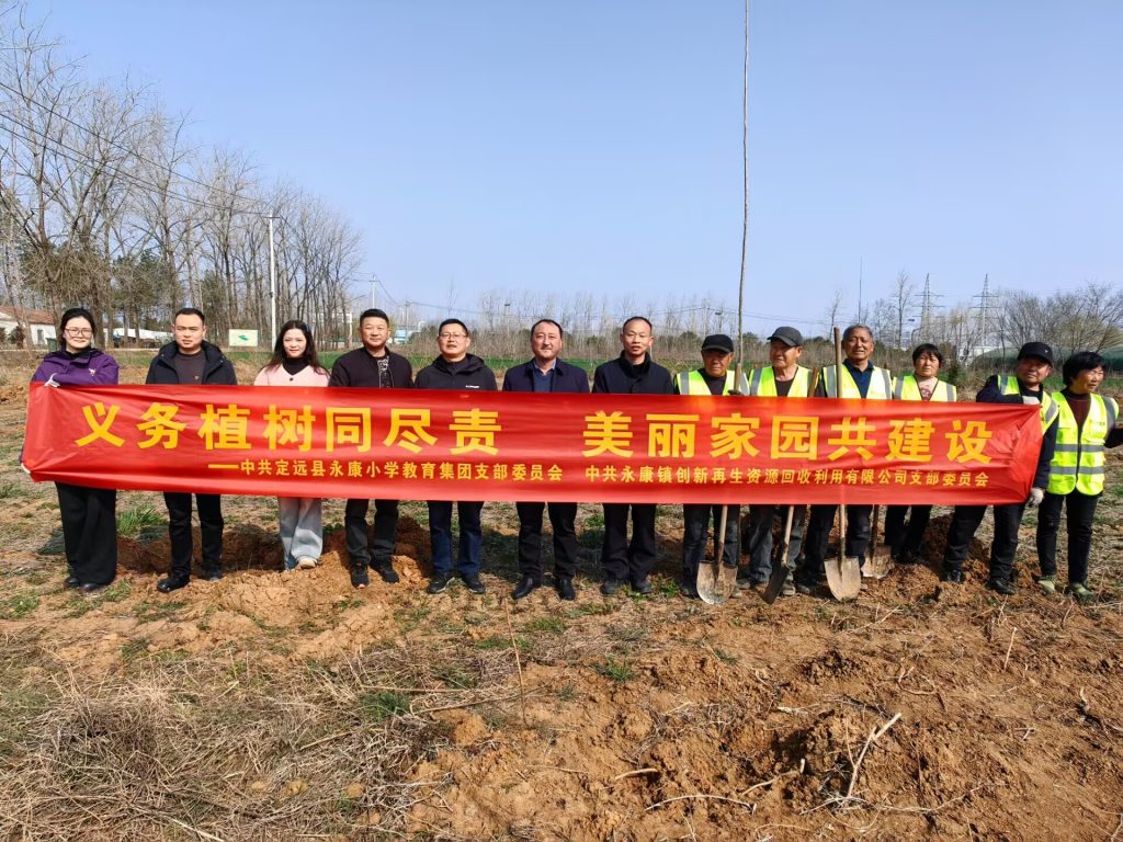 ~ 春回大地,植树添绿正当时。为深入践行习近平生态文明思想,牢固树立“绿水青山就是金山银山”的绿色发展理念,3月12日上午,定远县永康小学教育集团党支部及永康镇创新再生资源回收利用有限公司党支部组织开展义务植树活动,用实际行动为春日增添一抹新绿。