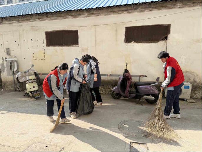 ~ 情暖社区,共建和谐。3月14日,部分党员教师带领学生走出校园,进入社区开展环境卫生志愿服务活动。社区内,红色的志愿马甲成为了一道最亮丽的风景线。师生们发扬“特别能吃苦、特别能战斗”的奉献精神,深入小区角落,集中清理了卫生死角、楼道杂物及白色垃圾。