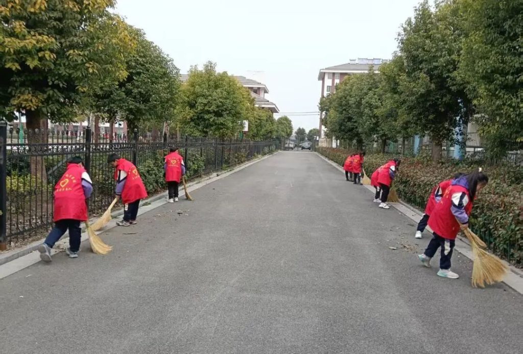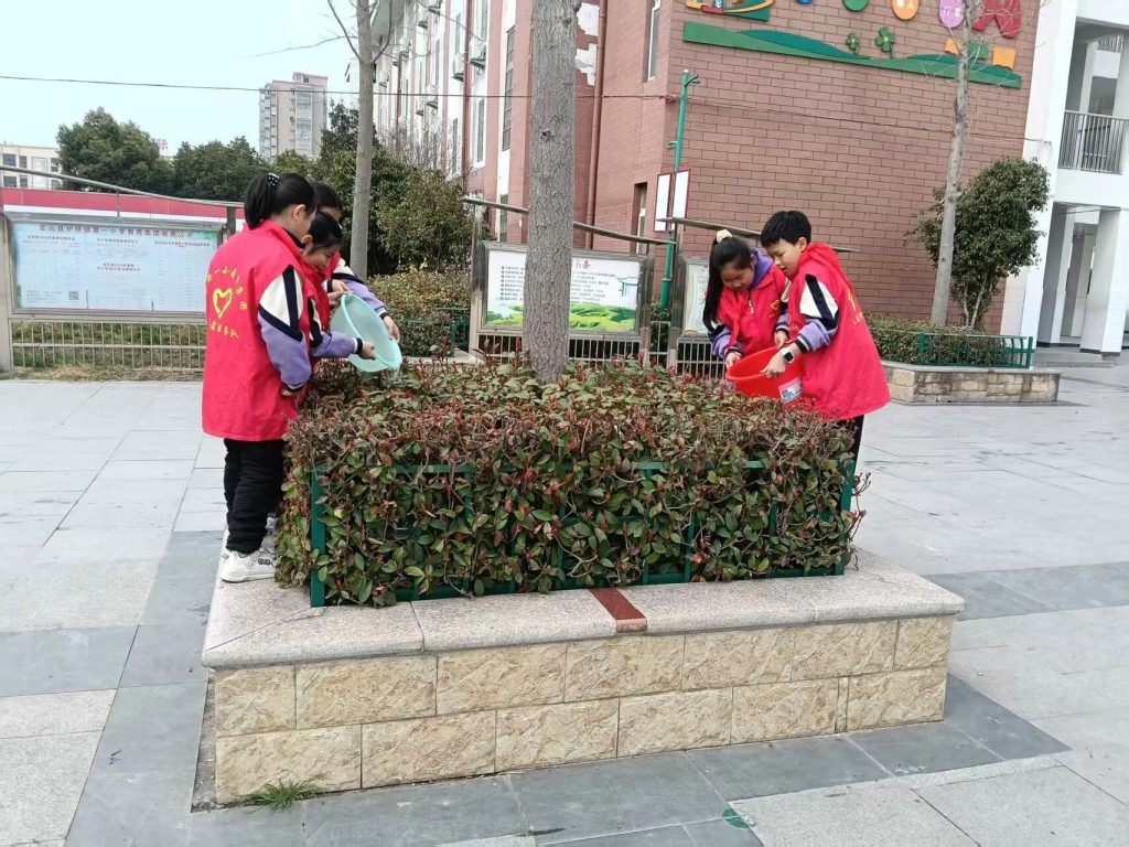 ~ 在实践环节,同学们化身校园小志愿者,积极参与“护苗”行动与校园环境清扫,认真清理卫生死角、养护绿植,用双手美化校园环境。