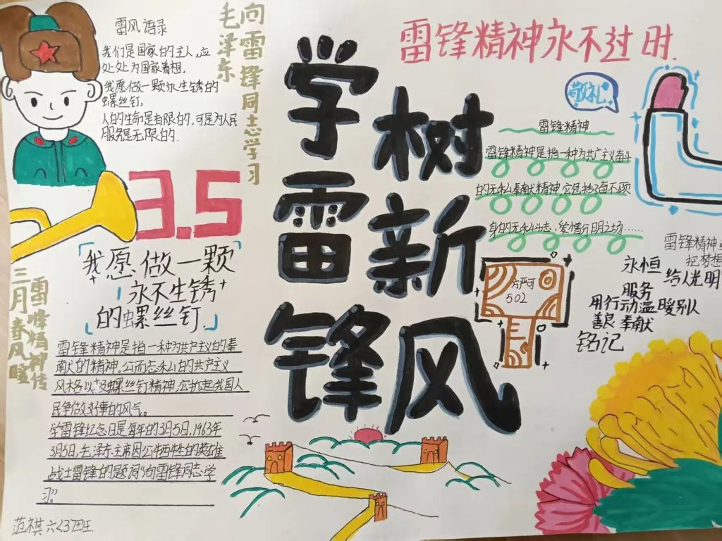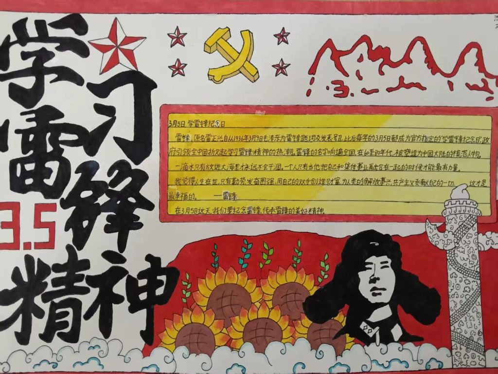 ~ 同时,学校还组织学雷锋主题手抄报、黑板报、征文创作,同学们以笔为媒、以画传情,用生动图文展现雷锋事迹与精神风貌,营造出浓厚的学雷锋氛围。