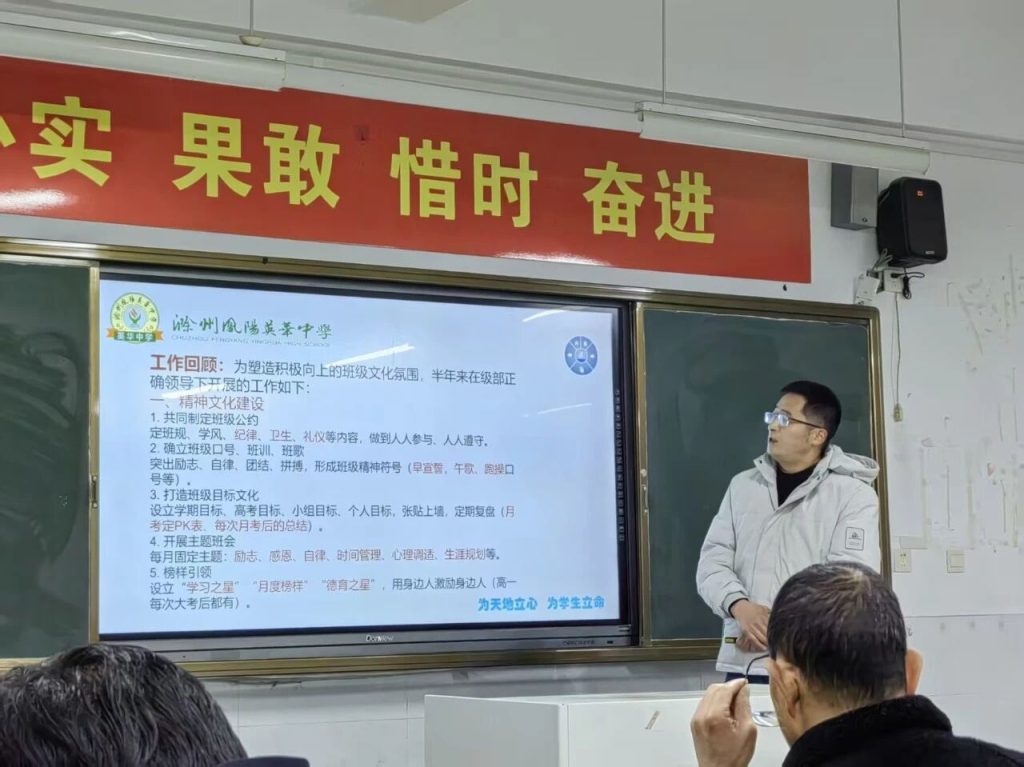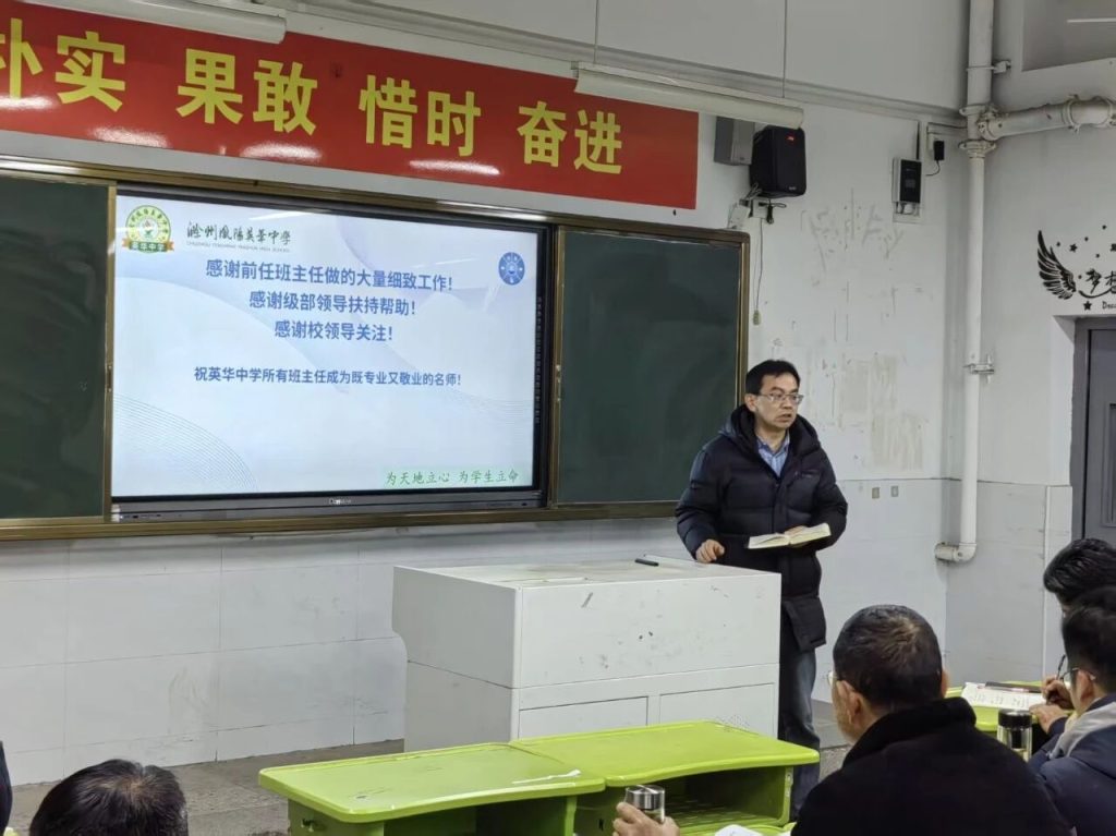 ~ 班级文化是一个班级的灵魂,班级文化建设是一个漫长且艰巨的过程,如何在日常管理中有温度地建设好班级文化是班主任们的必修课。2026年3月18日,滁州凤阳英华中学高中部组织召开第六期“心根教育之心性德育”主题论坛活动,共同探讨班级文化建设的路径与智慧。执行校长崔校长,高中部校长刘其兵、德育副校长高助业及全体班主任参与了本次活动,活动由高中部德育主任张冲主持。