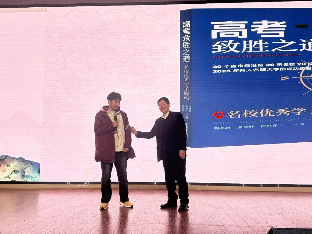 ~ 为帮助高三学子精准把握备考方向、优化学习方法、提振冲刺信心,2026年3月19日,滁州凤阳英华中学特邀中国知名教育专家陶继新先生,开展《高考致胜之道——20所名校20位优秀学子解码》专题报告,执行校长崔校长、高中部刘校长携全体中层以上领导及高三年级全体师生共同共同聆听这场精神盛宴,高中部教研副校长胡校长主持本次活动。