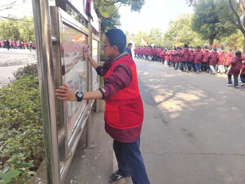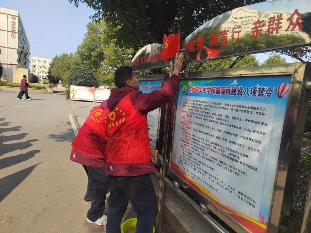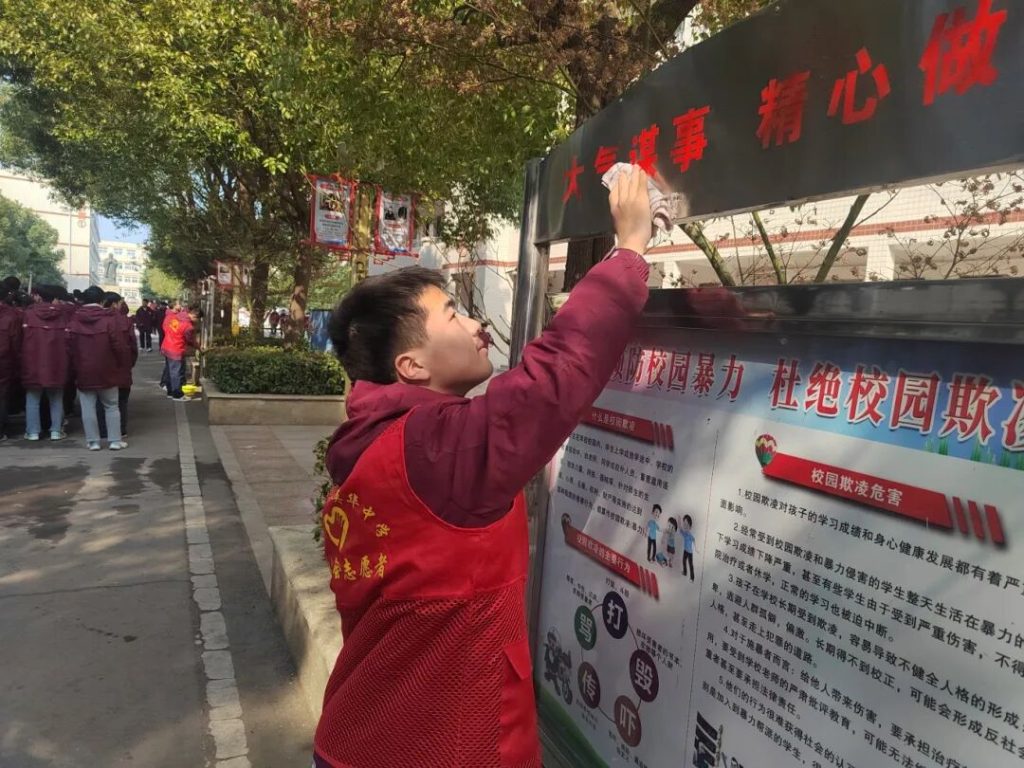 ~ 全体师生全员参与校园全域卫生大扫除活动。教室、走廊、楼梯、操场、宣传栏、卫生间,处处都是忙碌身影。同学们手持抹布、扫帚、垃圾袋,认真清扫纸屑杂物、擦拭灰尘污渍、清理卫生死角,不放过一处细节、不落下一片角落。经过全力清扫,校园环境焕然一新、整洁雅致,大家用劳动守护美丽校园,践行 “爱校如家、勤于劳动” 的优良风尚。
