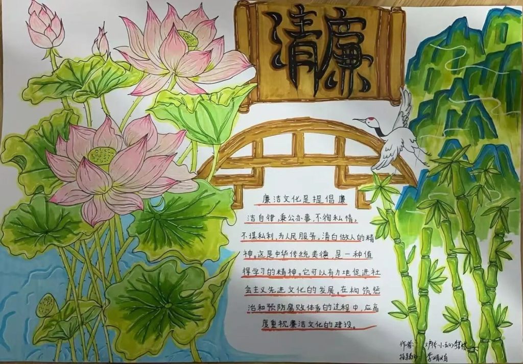 ~ 此外该校少先大队组织高年级开展了以廉洁为主题的手抄报和征文活动,以实际行动来抒发对廉洁的理解和感悟。