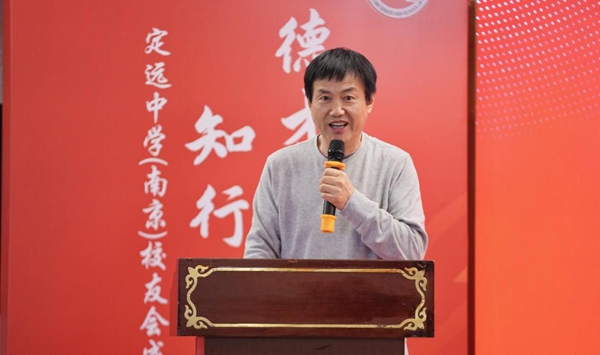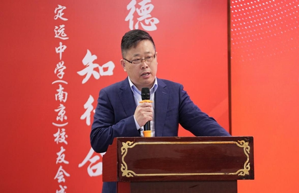 ~ 新任首届定远中学(南京)校友会会长施国庆在发言时表示,校友会将坚持务实、创新、开放、共享的理念,以“服务校友、服务母校、服务社会”为根本宗旨,以“凝聚情感、助力成长、回馈桑梓”为工作方向,明确“四大定位”,让校友会成为情感的温馨港湾、事业的助推平台、联结母校的坚实桥梁、展示风采的精神旗帜。