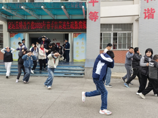 ~ 为进一步强化师生防震减灾意识,提升应急避险与自救互救能力,定远县特教学校于2026年3月27日上午组织全体师生开展春季防震逃生疏散演练活动。